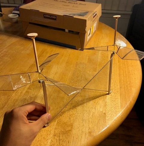 In fact, this design became so reliable that Science Olympiad created its own step-by-step kit that contains all the necessary materials and instructions for construction. The kit included thin carbon fiber rods and laser-cut wood pieces to optimize the weight of the helicopter and also included an extra rod attachable to the very tip of the top rotor to prevent the rotors from directly contacting the ceiling when flying (which could potentially damage the copter mid-flight). Due to the popularity of this kit design, I personally felt that much of the engineering spirit of the event became lost. Competitions saw team after team with identical designs come to fly, and the longest flight times ended up being awarded to the team that was able to make their helicopter the neatest. When the specifications (such as max rotor diameter and minimum helicopter weight) were changed between years, the kit would optimize accordingly. Teams who chose to deviate from the kit design and place faith in their own innovative abilities usually did not stand a chance.
