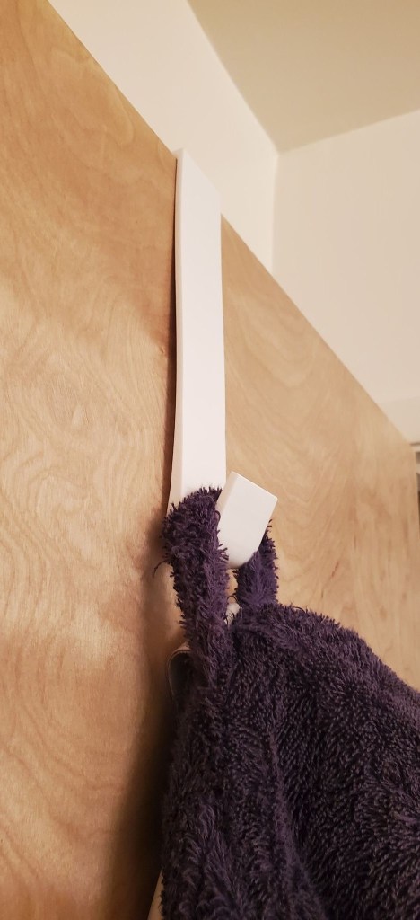 When I first moved into my college apartment, I quickly realized that there were no hooks on the door or wall of our bathroom to hang my bathrobe on. There were tower-hangers attached to the wall, but those do not tend to accommodate an entire large bathrobe. Instead of giving up my luxury preference of a robe for a shaggy towel, I decided to print my own robe hook that simply sits on the top of the bathroom door.